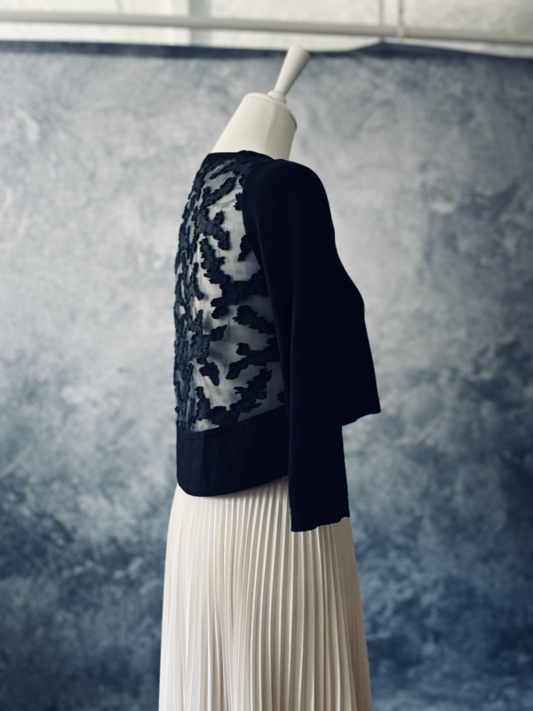Der leicht verlängerte Rücken mit filigraner Spitze auf transparentem Stoff verleiht der Damen Strickjacke eine elegante, besondere Note. Das weiche Material garantiert hohen Tragekomfort.