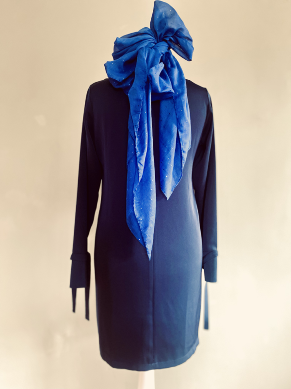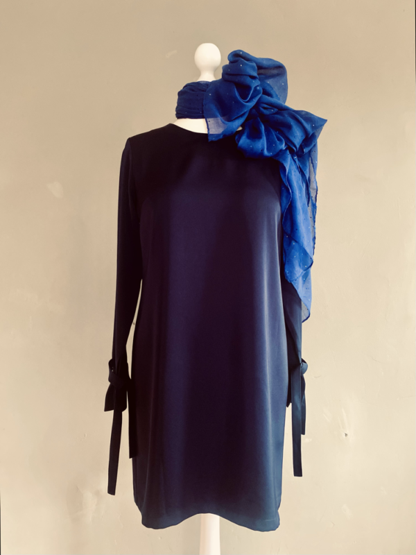Klassisch, raffiniert und zeitlos schön: Dieses dunkelblaue Kleid von Sienna überzeugt mit eleganter Zurückhaltung und liebevollen Details. Gefertigt aus einem schimmernden, leicht strukturierten Stoff mit angenehm festem Griff, bringt es dezente Eleganz in jeden Anlass.