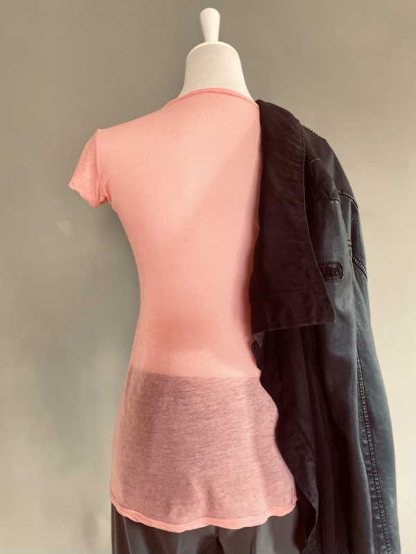 Ein Hauch von Nichts auf der Haut: Dieses hauzarte T-Shirt in zartem Rosa umschmeichelt den Körper mit einer fast schwerelosen Leichtigkeit. Gefertigt aus feinster, weicher Baumwolle, wirkt es wie eine zweite Haut – leicht transparent, edel und dezent verführerisch.
