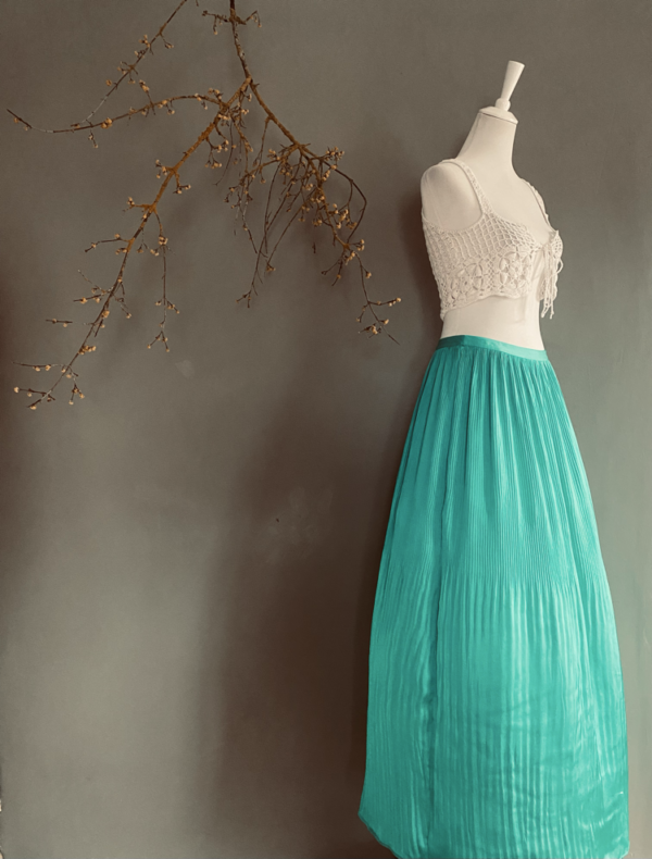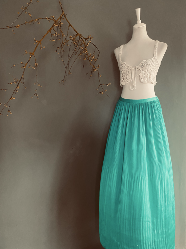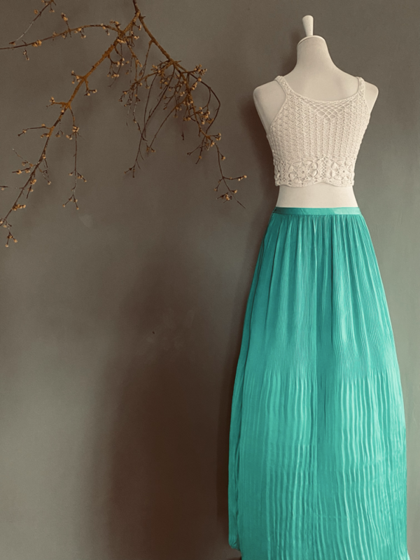 Dieser leuchtend grüne lange Rock von Marciano Guess ist ein wahres Statement-Piece für jeden Kleiderschrank. Der kräftige Grünton zieht alle Blicke auf sich und verleiht dem Look eine frische, lebendige Ausstrahlung. Der Rock ist aus einem plissierten, leichten und seidigen Stoff gefertigt, der ihm eine wunderschöne, fließende Bewegung verleiht. Bei jedem Schritt schwingt der Rock weit und sorgt für einen eleganten, fast träumerischen Effekt.