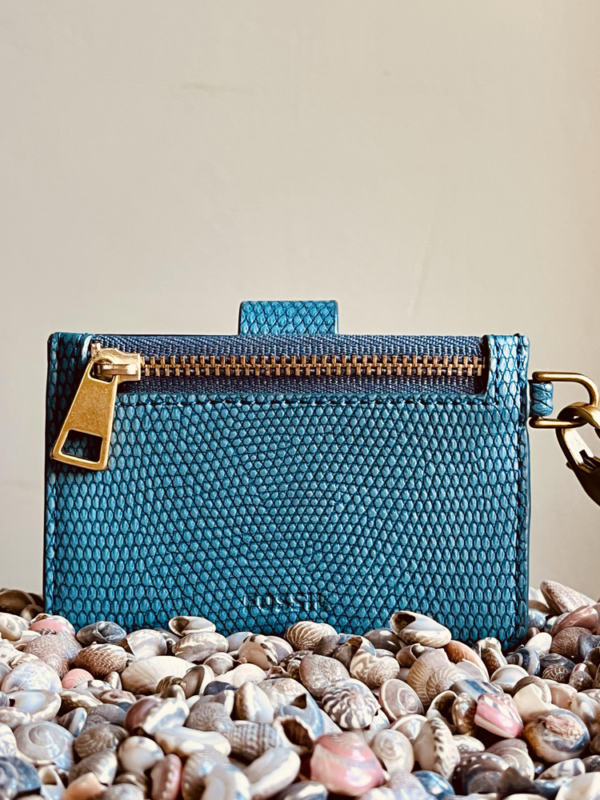 Das Etui verfügt über sieben praktische Kartenfächer, die übersichtlich angeordnet sind und schnellen Zugriff ermöglichen. Eine kleine Reißverschlusstasche auf der Rückseite bietet zusätzlichen Platz für Münzen, Schlüssel oder andere Kleinigkeiten.