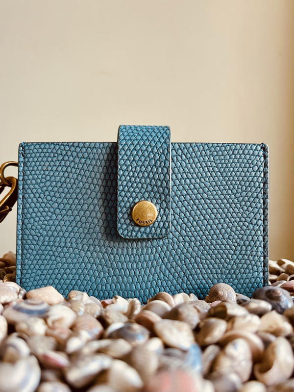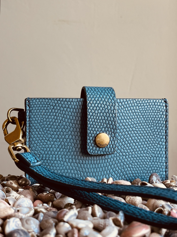 Dieses hochwertige Kartenetui von Fossil vereint Funktionalität mit klassischer Eleganz. Gefertigt in edler Echsenlederoptik in einem tiefen, stilvollen Blau, ist es der perfekte Begleiter für alle, die Wert auf Stil und Ordnung legen.