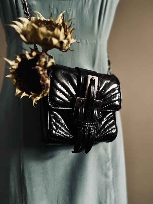 Diese kleine Tasche aus glänzendem, weichem Lackleder zieht alle Blicke auf sich. Ihr edler Glanz verleiht jedem Outfit das gewisse Etwas – ob als stilvoller Akzent am Tag oder als Eyecatcher am Abend.