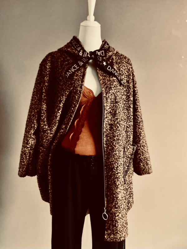 Der kuschelig weiche Mantel von Dance & Impress verbindet Komfort mit femininer Eleganz. Die praktische Kapuze und der Reißverschluss auf der Vorderseite machen ihn zum idealen Begleiter an kühlen Tagen, während seitliche Taschen für warme Hände und zusätzlichen Tragekomfort sorgen. Besonders schön zeigt sich der Mantel von hinten: Ein hübscher Faltenwurf verleiht dem Design eine fließende, verspielte Silhouette. Ein Lieblingsstück, das Wärme, Stil und Wohlgefühl perfekt vereint.