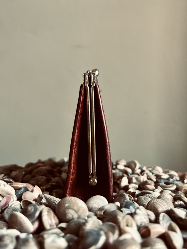 Der klassische Messingverschluss rundet das Design stilvoll ab und sorgt für sicheren Halt. Trotz seiner kompakten Größe bietet das Portemonnaie Platz für das Nötigste – ideal für Münzen, gefaltete Scheine oder ein paar Karten.