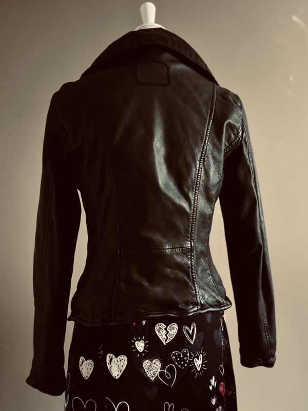 Diese Bikerjacke von tigha verkörpert urbanen Stil und hochwertige Verarbeitung in Perfektion. Das glatte Leder an Rücken und Ärmeln verleiht der Jacke ihre charakteristische Coolness und einen edlen Glanz. Im Saum eingearbeitete Drähte ermöglichen ein individuelles Verstellen und Formen, sodass jeder Look eine persönliche Note erhält.