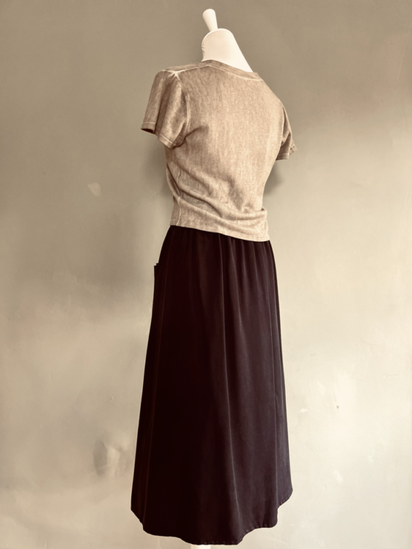 Dieser schwarze Rock von mbyM verbindet zeitloses Design mit funktionalem Komfort. Der leicht ausgestellte Schnittsorgt für eine schmeichelnde Silhouette, während der elastische Gummizug in der Taille für einen bequemen Sitz sorgt – ganz ohne einzuengen.