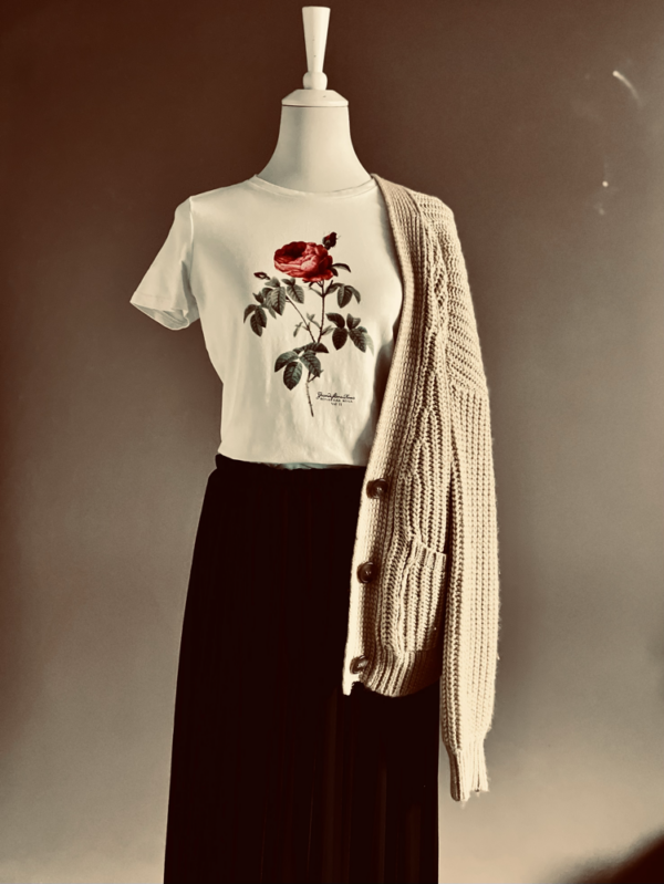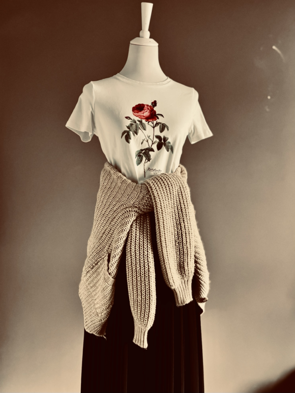 Das weiße T-Shirt von H&M überzeugt mit seinem schlichten, frischen Design und einem wunderschönen Rosenprint auf der Vorderseite. Der zarte Blumendruck verleiht dem Basic einen femininen, romantischen Touch, während der klassische Schnitt für angenehmen Tragekomfort sorgt. Ein vielseitiges Lieblingsstück, das sich mühelos zu Jeans, Röcken oder unter einem Blazer kombinieren lässt – zeitlos, lässig und mit einem Hauch von Verspieltheit.