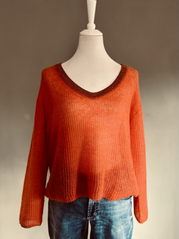 Ein Hauch von Luxus für kühle Tage: Dieser Pullover von Luisa Cerano begeistert mit seinem edlen Materialmix aus Alpaka und Mohair – unglaublich weich, zart und leicht transparent. Das warme Orange bringt Farbe in den Alltag und schmeichelt dem Teint.